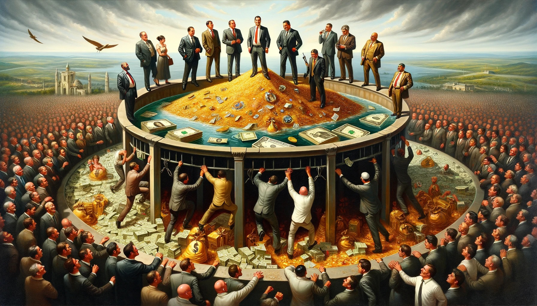 Real-world pools tend to be bastions of influence because they contain more than just one resource. Money almost always plays a role here, but it isn't the end-all-be-all. For example, a head of state is in control of perhaps the most potent form of resource pool: a government. Governments have money, but they also have armies, populations of people, land, and so on.